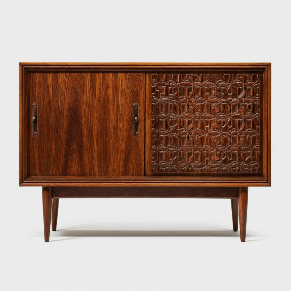 商品説明 この美しいウッドキャビネットは、ビンテージ風のデザインと精巧な彫刻が施されています。どんなインテリアにも自然に溶け込み、収納スペースとしても優れています。 材質と工芸 ダークブラウンの木材を使用し、高級感を醸し出しています。手彫りのデザインが施された扉が特徴です。 機能の特徴 広々とした収納スペースがあり、さまざまな物を整理整頓するのに最適です。しっかりとした構造で長持ちします。 商品内容 ウッドキャビネット本体 サイズ情報 幅: 120 cm 奥行: 40 cm 高さ: 80 cm 配送と設置情報 組み立てが必要な場合があります。配送と設置に関するさらなる詳細はお問い合わせください。 お手入れのアドバイス 柔らかい布で定期的にほこりを払ってください。必要に応じて木材用の保護剤をご使用ください。